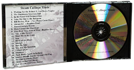 This great collection of musical favorites was recorded live by Greg Menke, a one time calliope player aboard the Belle of Louisville steamboat. His lively renditions come from real life experieince of playing for audiences cruising on the Ohio River in one of history's greatest methods of transportation: a river steamboat. The instrument used in the production of this wonderful CD was a 1939 Tangley Calliaphone, known as a calliope. Originally purchased from the Columbia Amusement Company in Paducah, Kentucky, it was used for public appearances on the showboat docks in Paducah, the Mayfield, Kentucky roller skating rink, Ford Motor Company picnics in Dearborn, Michigan, private events and parties, and functions hosted by the Coca-Cola Bottling Company in Paducah. In 1994, the antique calliaphone was donated, to the City of Paducah, Kentucky and restored by the River Heritage Museum, where it is currently on display.